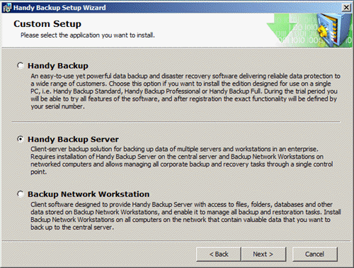 You start of by installing Handy Backup Server on a machine with administrative access to all network computers that you want to back up.