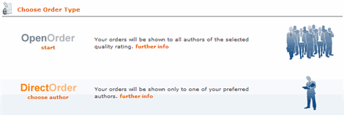 Now you get to select either an Open Order or a Direct Order. Open orders will be shown to all authors while direct orders will only be shown to the author of your choice.