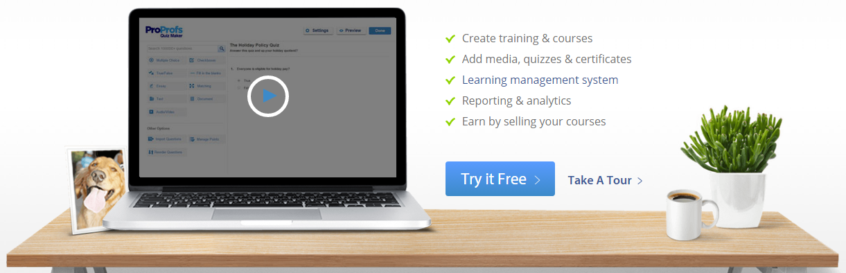 ProProfs also enables you to create public or private courses and gives you full access to the platform using passwords. The fee structure extends from Basic to Enterprise, based on the number of learners. You can experience the full product for free during the trial period as well.