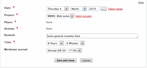 Now that projects have been added, an employee can begin to log in the time spent on a particular project using this web based online timesheet.