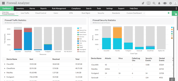 Figure 1. Firewall Analyzer’s Firewall Summary Dashboard