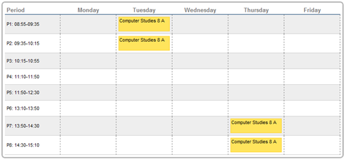 (Timestables & Resources) displaying time tables for students, teachers and courses.